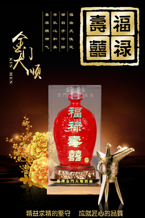 金門大順酒廠股份有限公司 為臺灣金門第一家合法民營酒類制造業(yè)者,多年來以生產(chǎn)好酒為宗旨,秉持傳統(tǒng)古法釀造技術(shù),廣受消費(fèi)者好評。